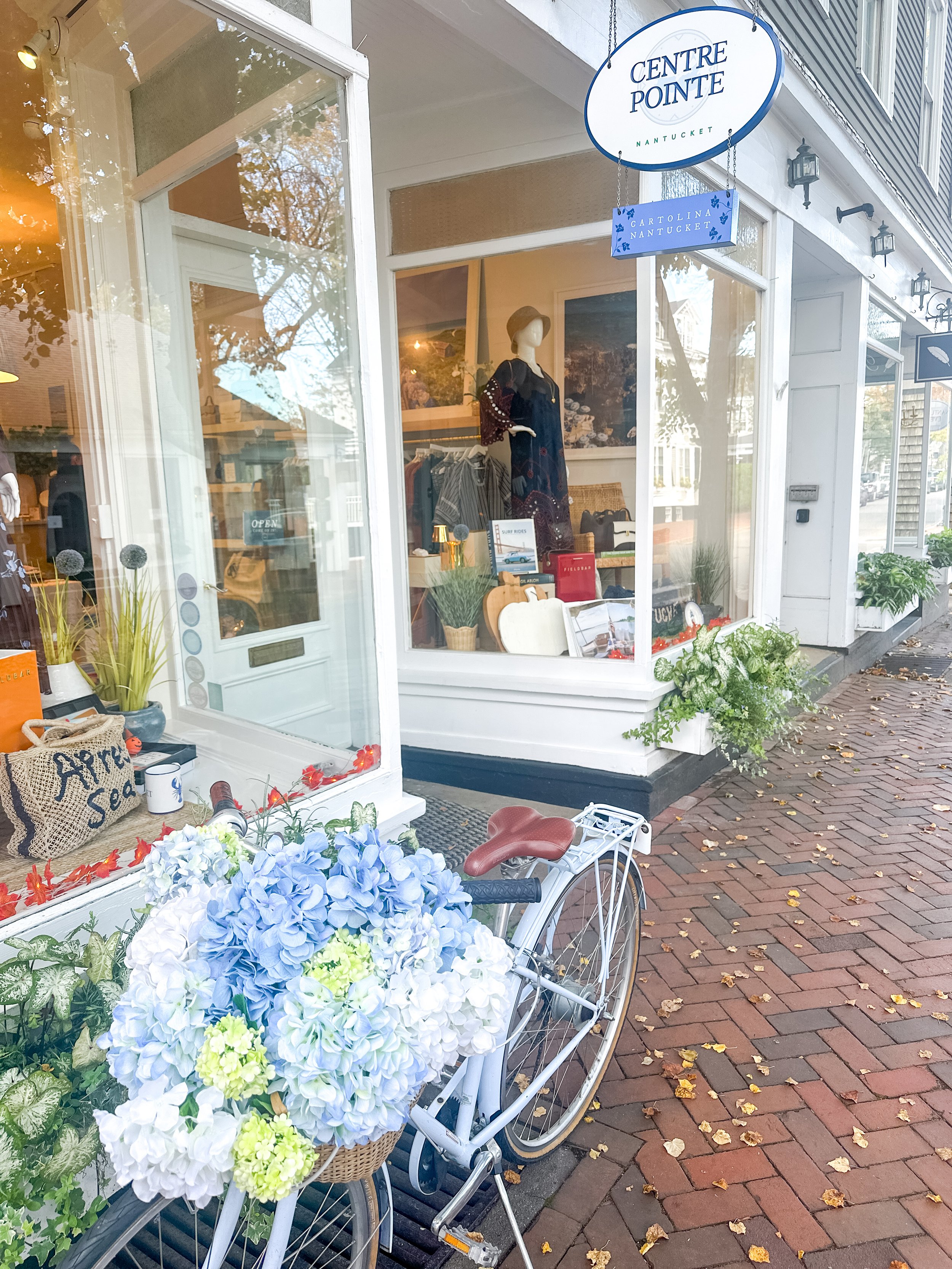 After the spa, we walked along the beach to Brant Point Lighthouse, watching ferries come into the harbor. The sky was soft and hazy, the air warm enough to stay outside a little longer. From there, we wandered through town โ popping into Centre Pointe for coastal linens and timeless pieces. The cobblestone streets were quiet, the hydrangeas fading to a fall pink โ that perfect off-season calm.