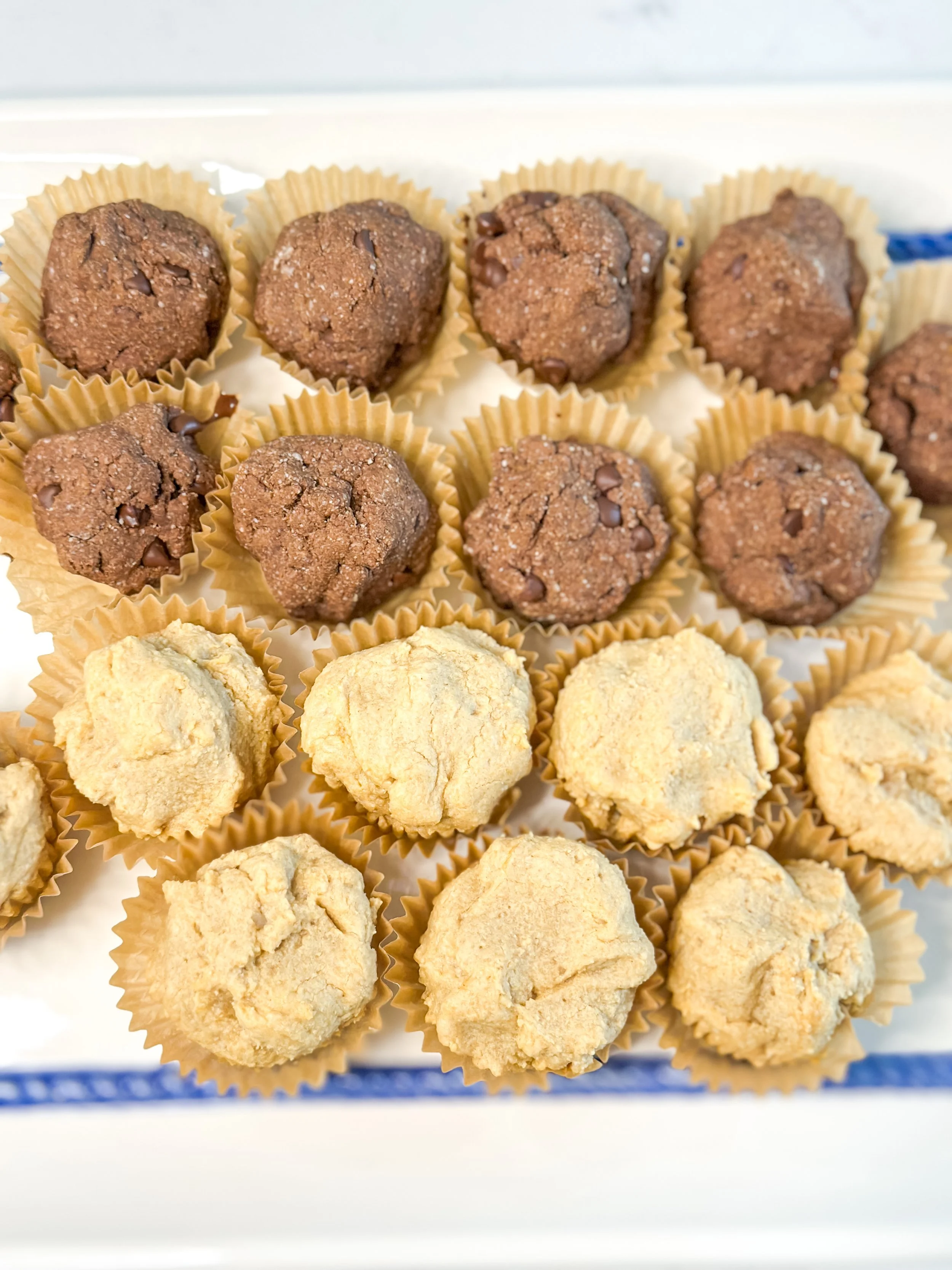 Add almond flour and coconut flour. Stir until a soft dough forms.