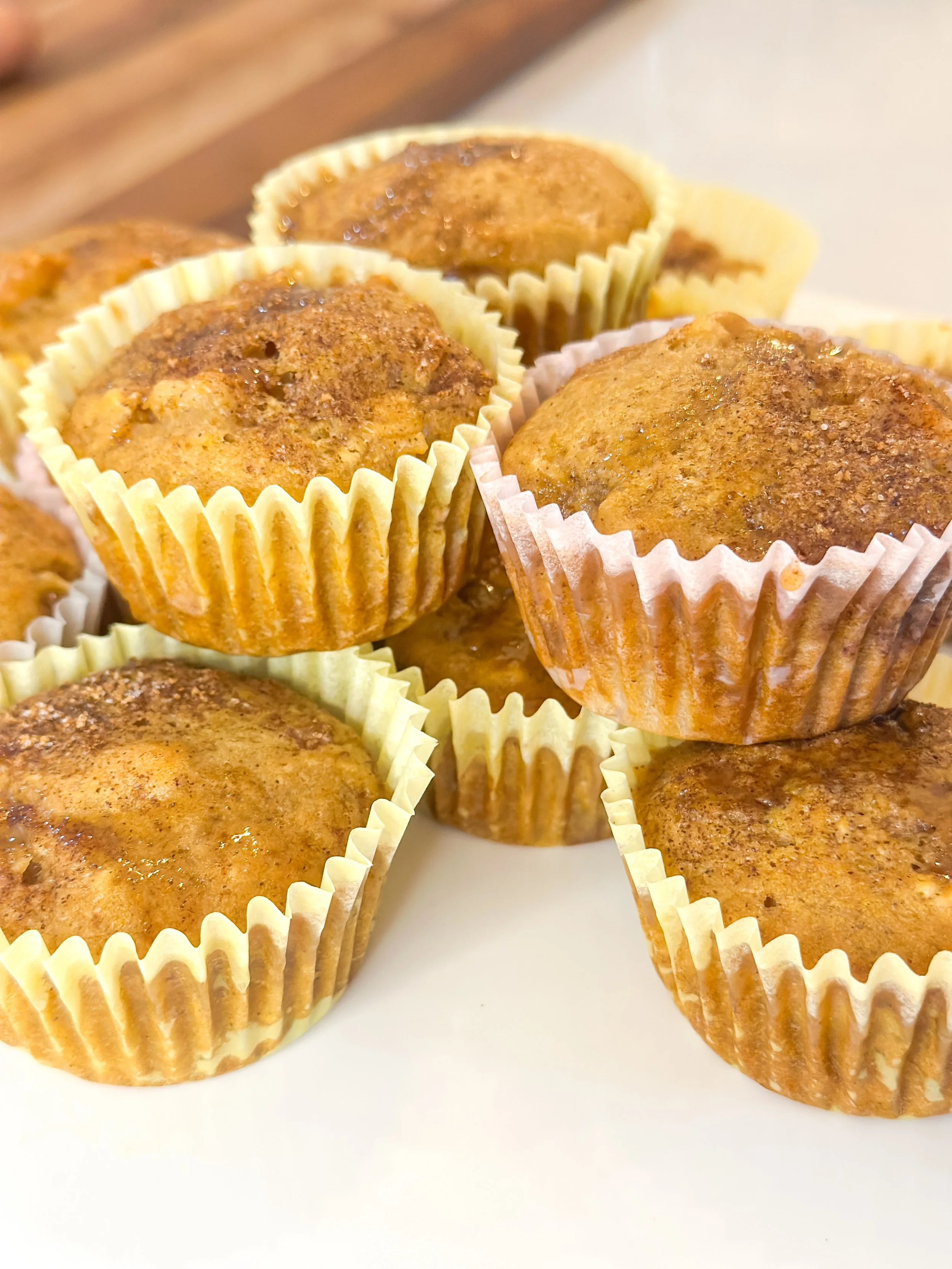 20β23 minutes, until golden and a toothpick comes out mostly clean (gooey apple bits are okay!).